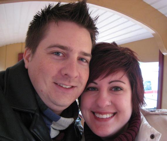 us on a 15-inch gauge railroad car on our fifth anniversary.