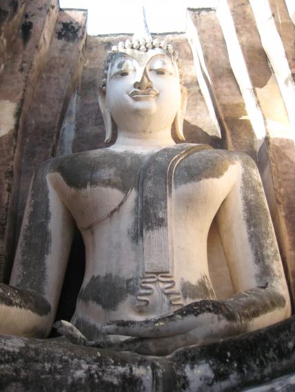a very large buddha statue known as the talking buddha. this was our last stop on our bicycle tour of old sukhothai.