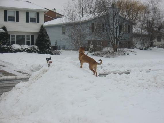 calvin was also into running across the street to play with the kids who were building snow forts. we didn’t appreciate him running across the street, but the kids liked having him around.