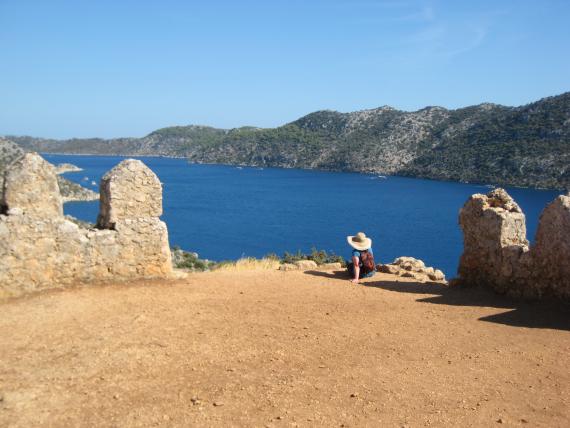 looking out over the mediterranean from the top of the castle at simena.
