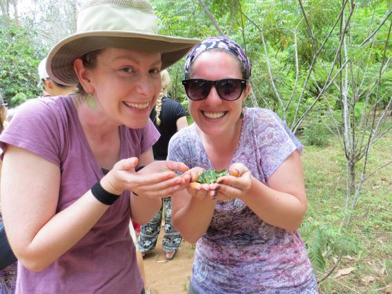 enjoying the smells of some of the spices grown on zanzibar. this one is curry leaves.