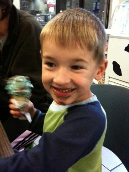 my nephew enjoying his dark side of the moon ice cream cone.