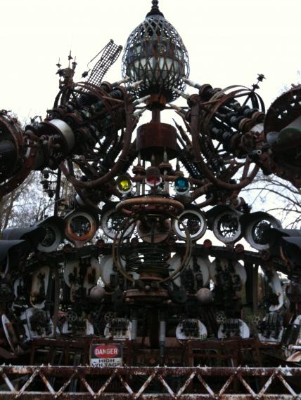 the middle section of the forevertron, at dr. evermore’s art park. it’s actually the back of the middle section, but i think it looks a lot cooler than the front, or at least the photo turned out better since the sun was behind me while i took it.