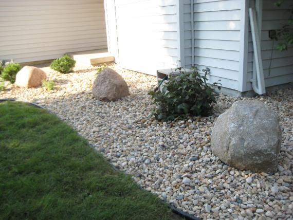 the granite boulders have been placed in the front and rinsed off. there are a couple more that you can’t see in this picture.