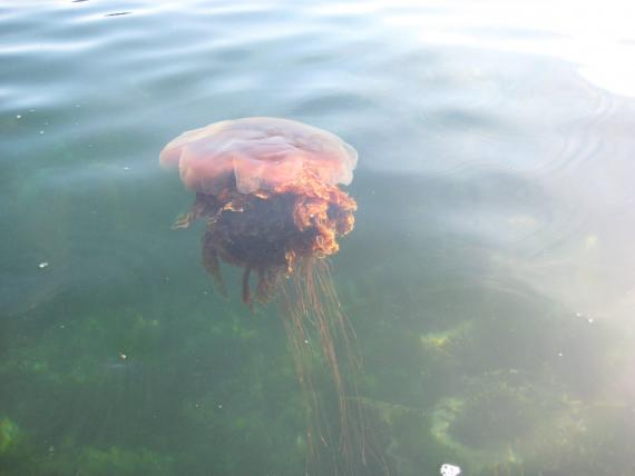 another lion’s mane jellyfish, swimming away from our kayak as we passed nearby.