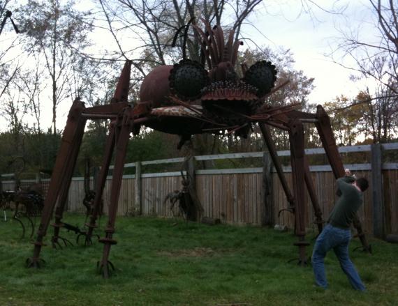 this giant spider is next to the section of dr. evermore’s art park that has a lot of scrap metal birds that are also made with musical instruments. the day we were there, a buck was wandering around just past that section.