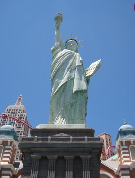 we stayed at the new york new york hotel while in vegas, and this is the statue of liberty they had out front. you can also see part of the hotel’s roller coaster which we rode on saturday. there was a candy shop inside the hotel that had a statue of liberty made of jelly beans.
