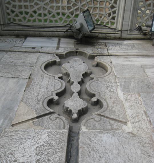 an ornate drain in one of the open outdoor areas of the harem at topkapı palace.