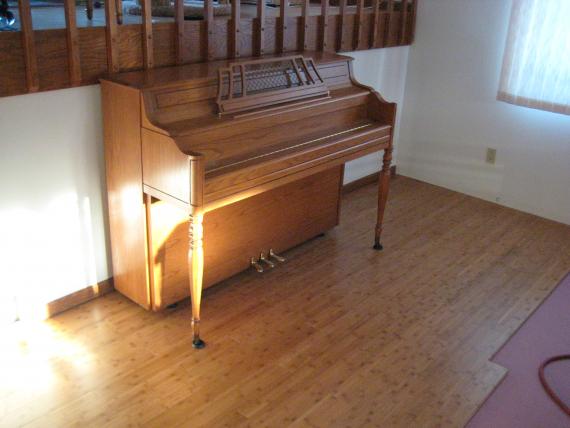 our piano back in place after we got enough bamboo down. we managed to move it off the carpet and then later onto the bamboo on our own.