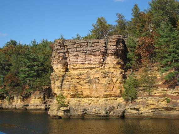 some sandstone cliffs in the dells, viewed from the tour boat.