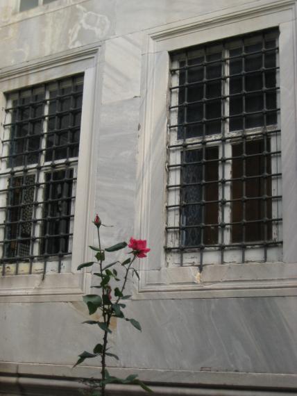 there were a lot of tall roses growing in turkey, so i took this picture of one with the topkapı palace library behind it.