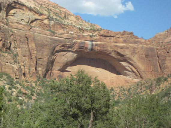 a seemingly natural arch in the rock at zion national park. i joked that somebody started cutting a tunnel through here but quit because it was too hard.