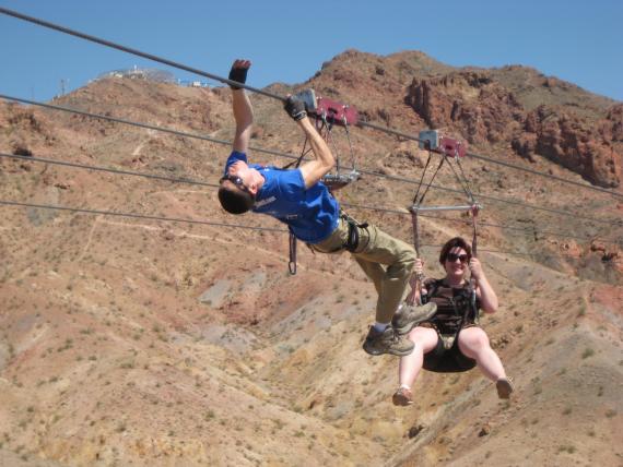 at the end of the 3rd of 4 zip lines, the guy who was supposed to catch my wife missed and she rolled back out onto the line. she got to hang there while he put his trolley on the line, pulled himself out to her, hooked a short rope between them, and pulled her back in.